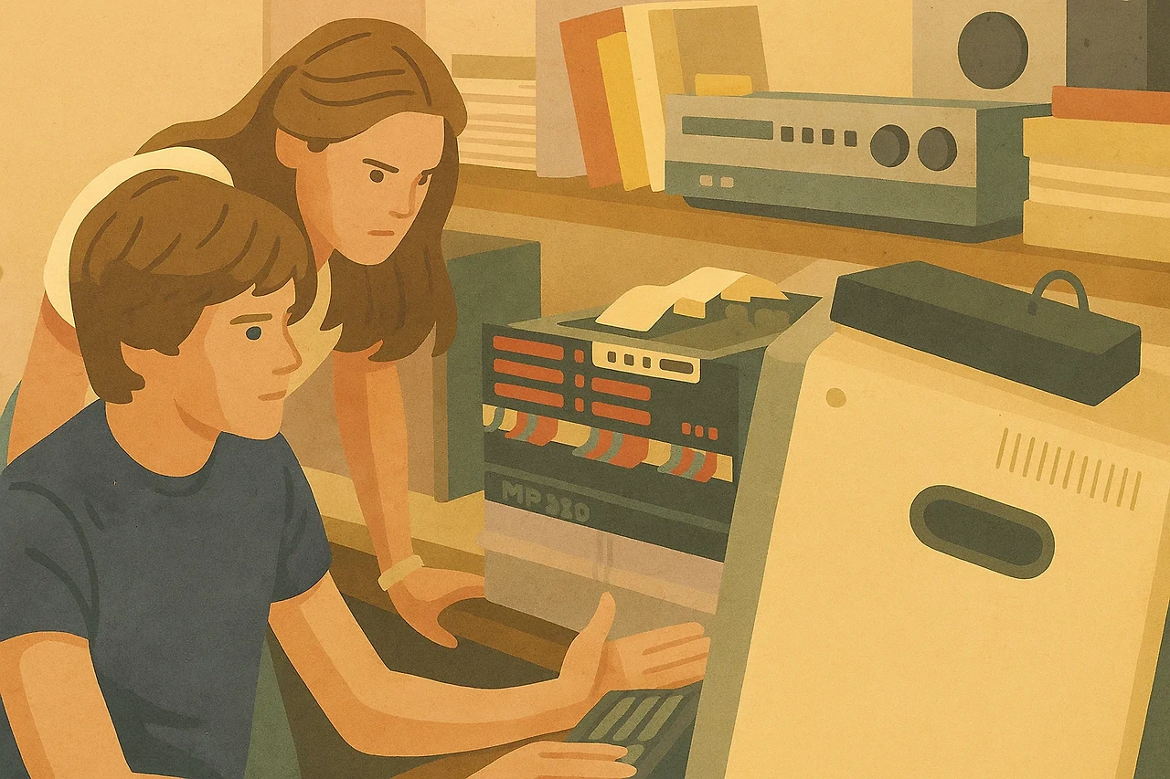집이라는 사적 공간의 책상 위, 회색 플라스틱과 전선이 얽힌 작은 계산기 하나가 놓였다. 단순한 도구가 아니었다. 작은 키보드 위의 손가락 하나가 세계의 시간과 사건을 끌어들이는 창이 될 수 있음을, 아직 아무도 알지 못했다.