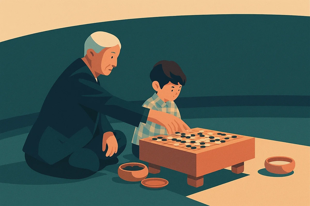 요임금이 아들에게 바둑을 가르치려 한 이유는 단순한 기예 습득이 아니라 인간됨의 훈련이었다. 권력과 힘을 좇는 단주의 기질을 누그러뜨리고, 만물의 질서를 읽는 눈을 틔워 주려는 시도였다. 그러나 단주는 그것을 배우지 못했고, 바둑은 그의 삶을 바꾸지 못했다. 그 실패는 역설적으로 바둑의 본질을 더 선명히 드러낸다. 바둑은 억지로 익힐 수 있는 기술이 아니라, 삶을 바라보는 태도와 마음의 깊이가 쌓여야 비로소 열리는 세계였기 때문이다.