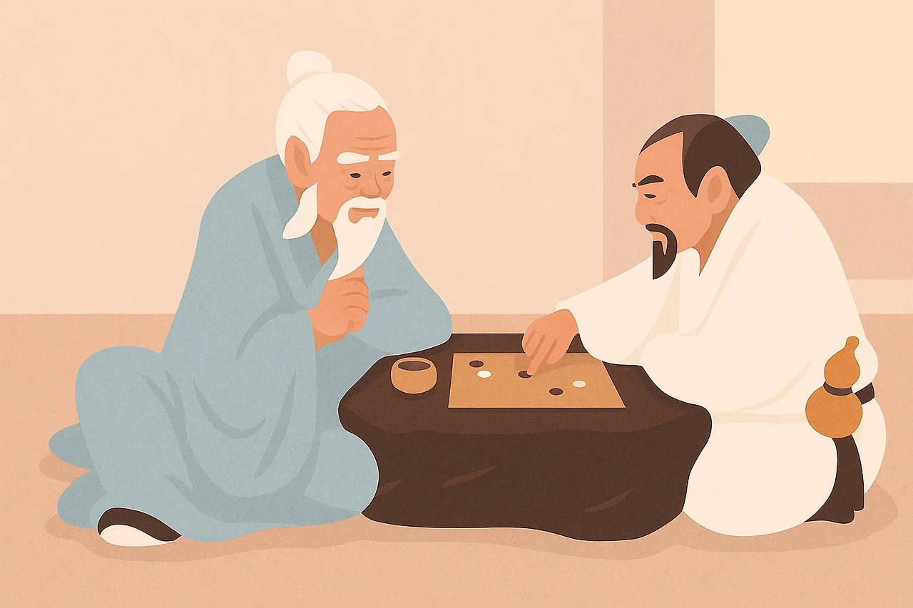 고대 중국의 요임금은 바둑을 고안하여 아들 단주를 가르쳤다고 전한다. 『박물지』와 『사기』의 기록은, 그가 덕망이 부족하고 싸움만을 좋아하던 맏아들을 바른 길로 이끌고자 했음을 보여 준다. 그러나 단주는 끝내 바둑의 참뜻을 깨닫지 못했다. 요임금은 결국 아들에게 왕위를 물려주지 않고, 대신 덕으로 충만한 순을 후계자로 삼았다. 이는 한 사람만을 위한 천하가 아니라, 만백성을 위한 군주가 필요하다는 요임금의 깊은 통찰에서 비롯된다. 그가 바둑을 통해 아들에게 가르치려 한 것은 단순한 계산 능력이나 전술이 아니라, 소통과 조화, 그리고 만물의 이치에 대한 감각이었다.