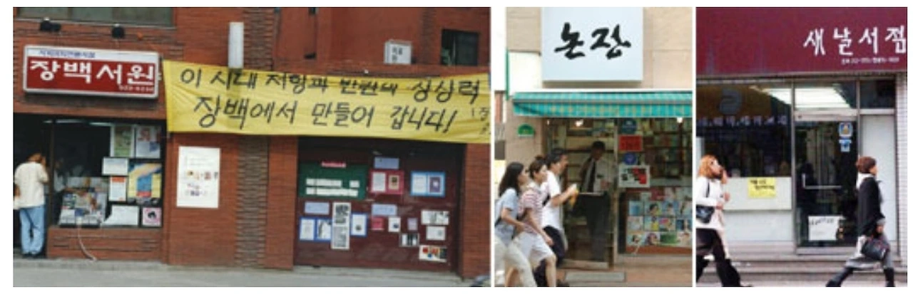 그 후폭풍은 대학 앞 작은 가게들에게도 예외가 아니었다. 독다방이 독숍으로 바뀌고, 작고 이야기들 가득하던 공간들은 젠트리피케이션의 표징이 되었다. 그 속에서 인문사회과학 전문서점 또한 버티지 못했다. 한때 140여 개가 넘었던 인문사회과학 서점들은 하나둘 사라지기 시작했고, 이제는 손에 꼽을 만큼만 남았다. 오늘의 책, 장백서점, 논장, 새날서점—이 이름들은 이제 추억 속에서만 존재한다.