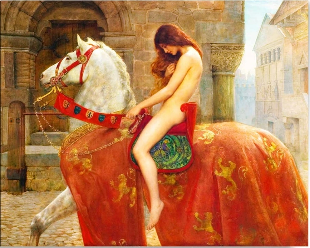 고다이바 부인(Lady Godiva)은 10~11세기 무렵 머시아 왕국, 지금의 영국 코번트리 지방의 백작부인으로 전해진다. 남편 레프릭 영주가 가혹한 세금을 거두자 백성들이 고통에 신음했다. 그녀는 그 세금을 감면해 달라 간청했으나, 영주는 조롱하듯 말했다. “벗은 몸으로 마을을 한 바퀴 돌면 생각해 보겠다.” 고다이바는 그 모욕적 제안을 받아들였다. 그녀가 진심을 다해 마을을 돌겠다고 하자, 사람들은 그녀의 뜻을 이해하고 그 시간 동안 누구도 창문을 열지 않기로 했다.