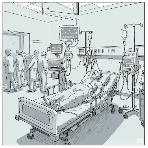 누군가의 목소리가 위에서 떨어졌다. 그 말은 설명이라기보다 선언에 가까웠다. 코로 들어온 투명한 튜브, 손가락을 집어 문 작은 기계. 그제야 알았다. 나는 이미 ‘환자’라는 이름으로 분류되고 있었다.