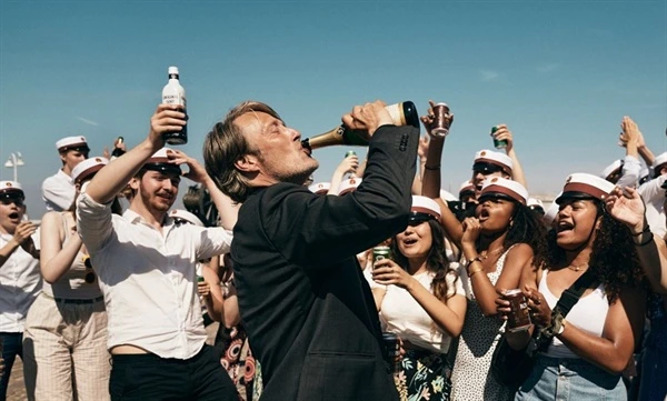 <어나더 라운드>는 이 순환을 끊는 방식으로 ‘비극적 긍정’을 제시한다. 그것은 금욕으로의 회귀가 아니라, 중독이 가리키는 자아의 결핍을 인정하고 그 결핍 속에서 새로운 리듬을 만들어내는 실천이다. 항구에서 제자들과 뒤섞여 춤추는 마르틴은 술의 힘을 빌리되 술에 잠식되지 않는다. 그는 친구의 죽음이라는 슬픔과 아내의 메시지가 건네는 기쁨을 하나의 율동으로 통합한다.