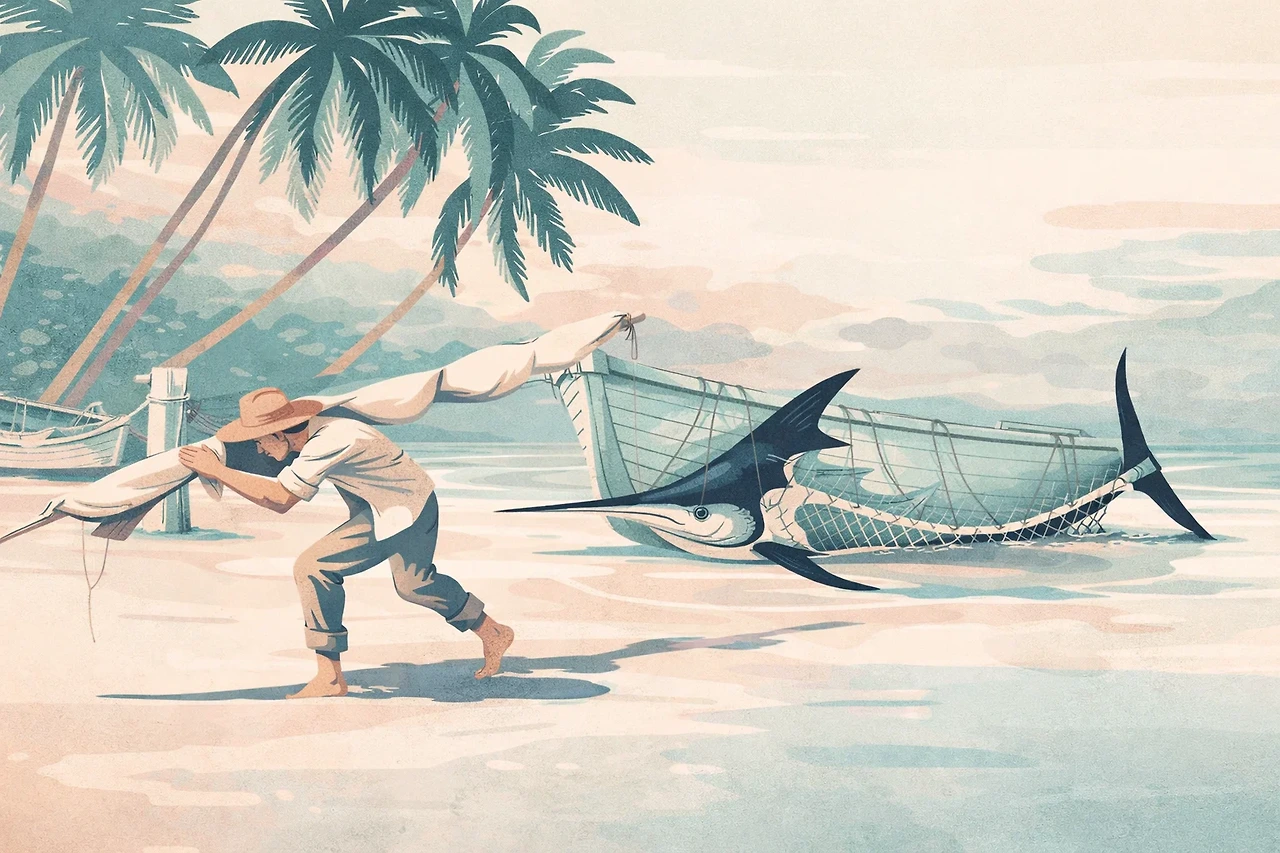 어니스트 헤밍웨이의 『노인과 바다』에서 산티아고가 거대한 청새치와 사투를 벌이며 되뇌는 이 독백은, 단순한 도움의 요청을 넘어서는 깊은 울림을 지닌다. 이 말은 무엇보다 노인의 실존적 고독과 육체적 한계를 또렷이 드러내는 장치다. 84일간의 불운 끝에 맞닥뜨린 압도적인 자연 앞에서, 산티아고는 자신의 노쇠함을 인정하게 된다. 그 순간 젊음과 활력을 상징하는 소년 마놀린의 부재는 인간이 본질적으로 지닌 나약함을 더욱 선명하게 부각한다.