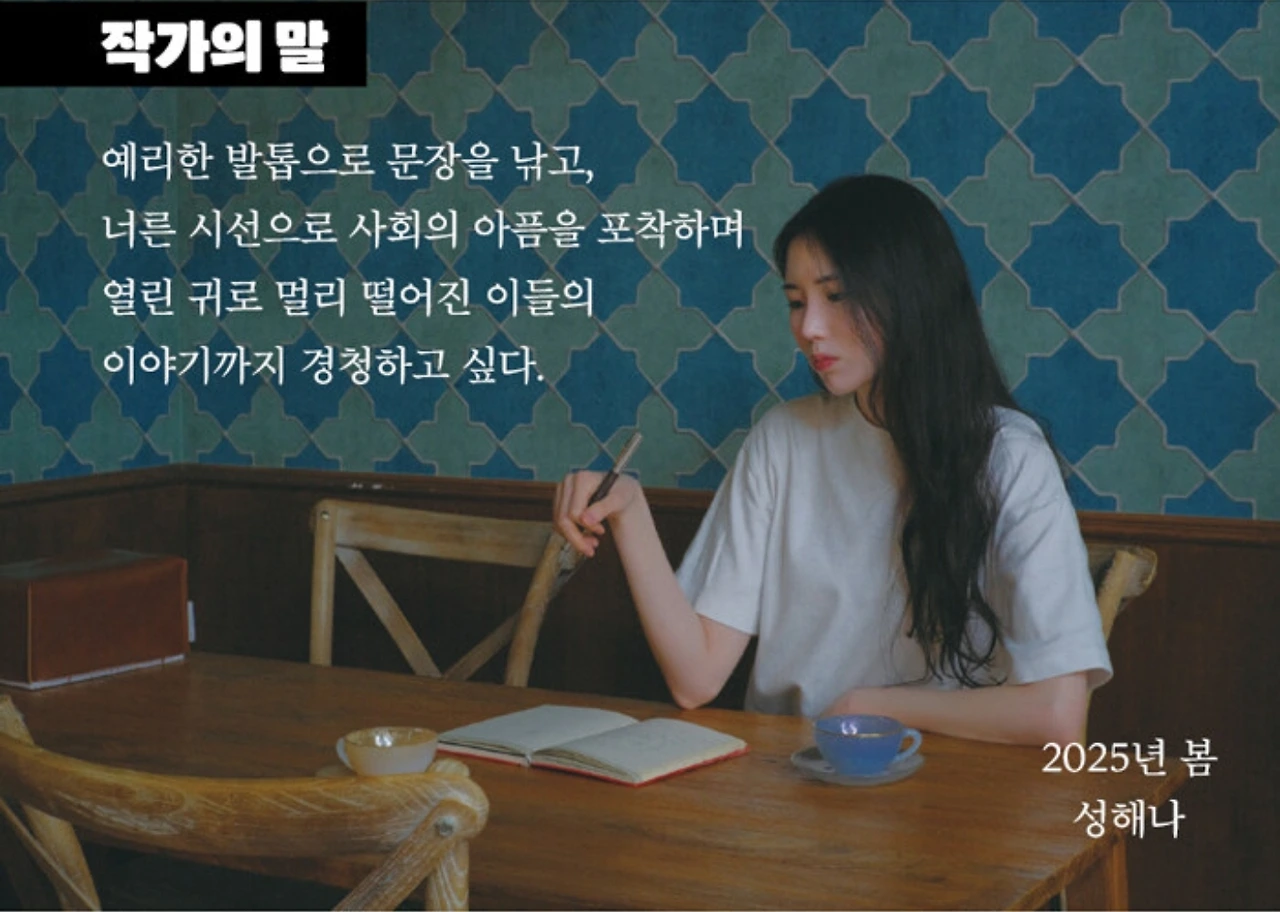 성해나는 “작가는 진짜를 쓰고 있는가”라는 질문에 쉽게 답하지 않는다. 그러나 그 답을 향해 끊임없이 자신을 밀어붙이는 수행의 태도를 포착한다. 그 서늘한 진짜를 향한 걸음 위에서, 다음 작품을 조용히 기다리게 된다.
