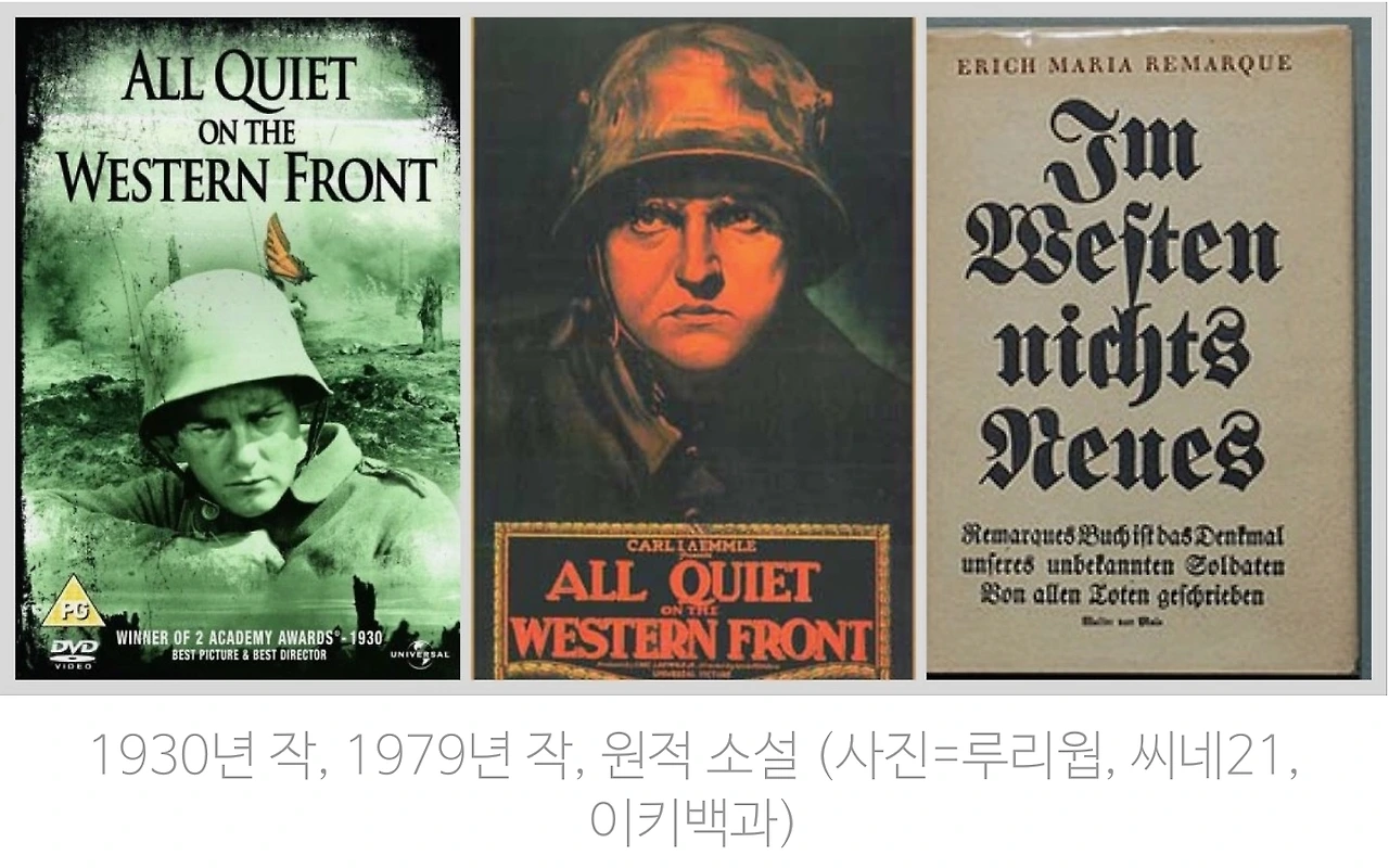 <서부 전선 이상 없다>는 1929년 출간된 원작부터 특별한 위치를 차지해 온 작품이다. 히틀러가 ‘약해 빠진 정신’이라며 혹평하고 상영을 금지시킨 1930년 미국 제작 영화는, 오늘 다시 보아도 놀라운 완성도와 고증으로 깊은 인상을 남긴다. 1979년 제작된 TV영화 역시 원작에 충실한 재현과 탄탄한 연기로 주목받았고, 국내에서는 KBS 등을 통해 안방극장에서 익숙한 작품으로 자리했다.