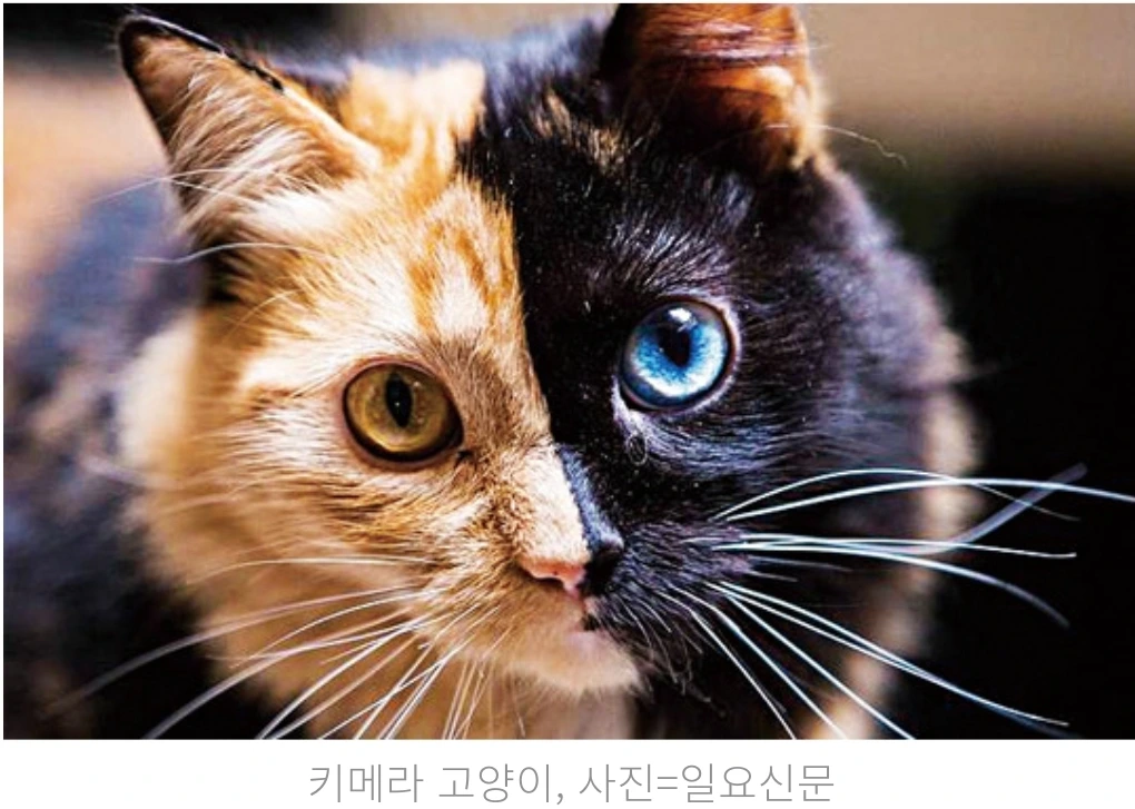 자신을 죽인 벨레로폰보다도, 당시 국통령이던 팝페라 가수보다도, 의과학과 유전자 연구의 성과를 설명하는 단어로서의 ‘키메라’가 더 강력한 생명력을 얻은 셈이다. 이형의 성질을 지닌 두 물질이나 생명이 결합된 상태를 가리키는 대명사로서, 키메라는 이제 인간 자신을 설명하는 언어로까지 확장되었다. 사람 역시 예외는 아니기 때문이다.