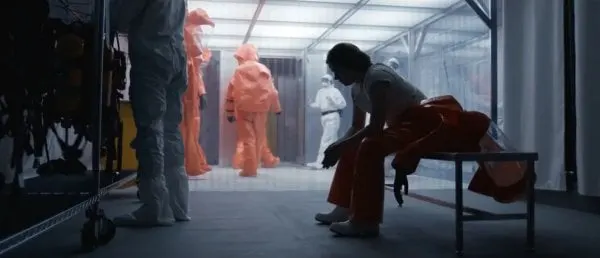 이러한 "컨택트"의 장면들이야말로 영화의 정서와 긴장을 떠받치는 중심이다. 빌뇌브는 폐쇄된 공간이 주는 압박과 알 수 없는 존재에 대한 두려움을 섬뜩할 만큼 절제된 방식으로 그려 낸다. 외계인의 모습이 완전히 드러나기 전의 시간이 오히려 더 강한 여운을 남긴다. 그 사이사이에 배치된 소소한 유머도 숨을 고르게 한다. 이안과 루이스가 두 외계인에게 붙인 ‘애벗’과 ‘코스텔로’라는 이름은, 언어적 오해에서 비롯된 고전 코미디를 떠올리게 하며 낯선 상황 속 인간적인 균열을 드러낸다.