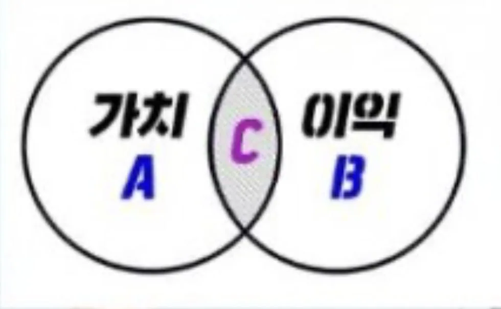 정치 비평가, 아니 분류학자는 원을 그린다. A는 가치, B는 이익. 그 사이에 C라는 회색 지대가 놓인다. 단정한 도식이다. 그러나 세상은 그 얇은 교집합에 더 가깝다. A 위에 서 있다는 감각은 쉽게 우월로 기운다. 그 원은 깔끔하다. 그러나 그 선은 낡은 도구로 그어진 흔적처럼 보이기도 한다.