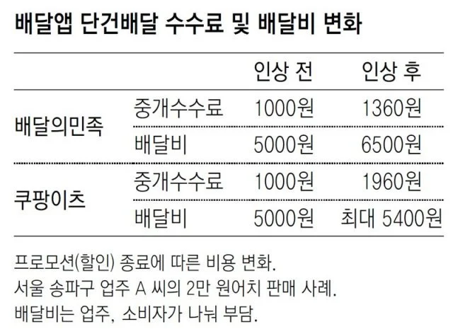 업계에선 배달비가 갈수록 높아지는 배경으로 ‘단건배달’(주문 1건당 한 곳만 배달)을 꼽는다. 2019년 쿠팡이츠가 도입했고, 지난해 6월 배달의민족까지 뛰어들면서 경쟁이 치열해졌다. 음식이 빨리 오는 단건배달이 인기를 끌면서 라이더들에 대한 수요가 폭증했고, 소비자와 자영업자가 부담하는 배달비 상승으로 이어졌다는 것이다. -기사 본문 중-