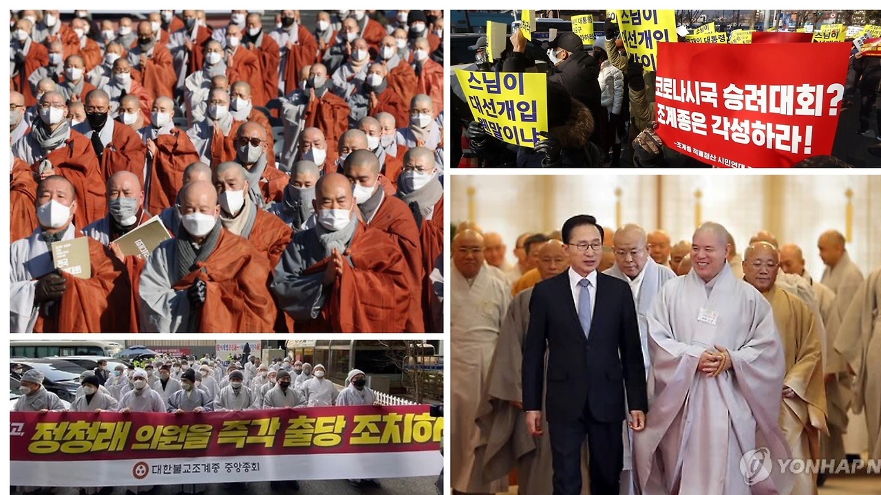 자승 개신교 독실한 집사 이명박 씨와 "호형호제" 사이로 유명하며, 최근 '승려대회'를 배후에서 도모했다는 대놓고 보수 정치 지지 종교인.