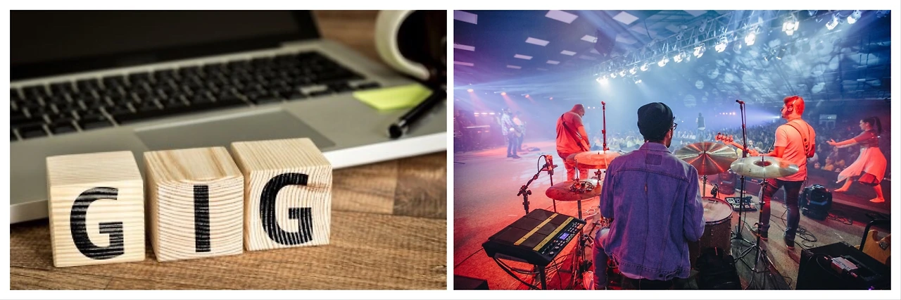 Gig의 어원은 위의 이적이 만든 밴드를 보면 알 수 있는데, 소정의 보수를 받고 연주를 해주는 '떠돌이 세션맨'을 이르는 말입니다. 한 팀이나 극단에 소속되지 않고 일정과 돈이 맞으면 연주를 거드는 일종의 프리랜서이고, 이 문화가 일본의 유흥 문화로 들어가 업소의 밴드 마스터 '오부리'의 기원이 되기도 합니다. ("오부리"는 포르투갈어 "오브리카토-합주"라는 말에서 왔다고는 하네요)