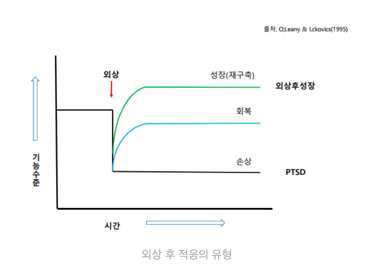 외상 후 성장(外傷後成長, 영어: post-traumatic growth, PTG 혹은 benefit finding)이라는 용어가 있습니다. 신체적인 손상 또는 생명에 대한 불안 등 정신적 충격을 수반하는 사고를 겪은 후 심적 외상을 받은 뒤, 회복력을 통해 이루어지는 회복(recovery) 상태뿐만 아니라 이를 통한 긍정적 변형(transformation)을 가리킵니다. 심리학적인 연구뿐 아니라 생물의 생장, 그리고 인체의 생리에도 연구가 되었습니다.