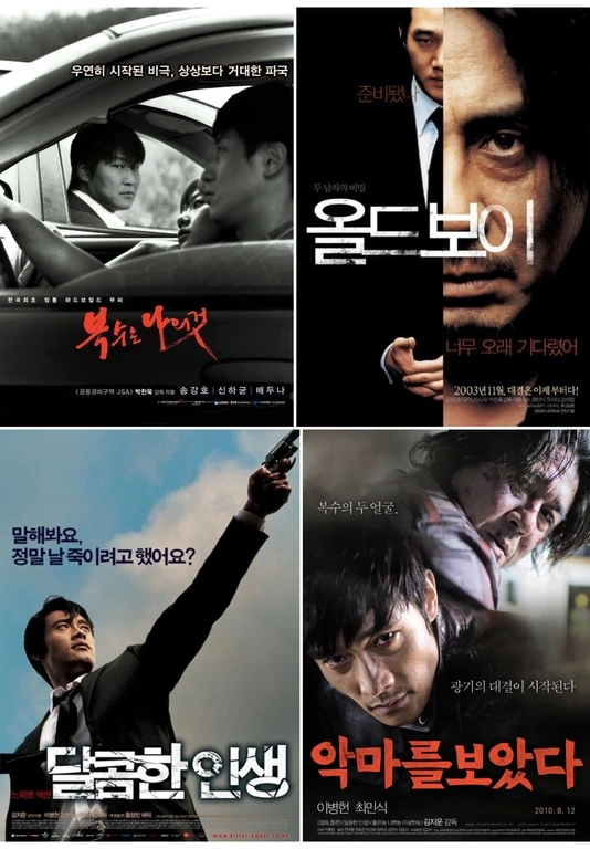 이와 같은 ‘복수극의 플롯’을 대표 하는 영화 속에서 나타난 복수와 그 이야기의 양상을 살펴 보는 것은 의미 있는 일이라고 할 수 있겠다. 그것은 박찬욱 감독의 <복수는 나의 것>, <올드보이>와 김지운 감독의 <달콤한 인생>, <악마를 보았다> 이다.