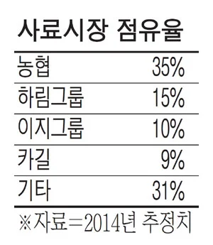 한국에서 해외, 국내 곡물 조달 및 유통 산업의 고도화를 위해서는 적합한 사업자들의 참여가 필요합니다. 현재 판단으로는 '사료 기업'들이 적합 업종으로 꼽힙니다. 사료라는 것이 양이나 용처를 고려할 때, 곡물 유통의 정점에 자리 잡고 있고, 이 사료에 적용하는 시스템과 인프라는 인간의 식량 곡물에도 적용될 수 있기 때문입니다. 다행히 사료의 영역에서는 유통의 과점을 국내 기업, 농협과 하림이 주도하고 있습니다.