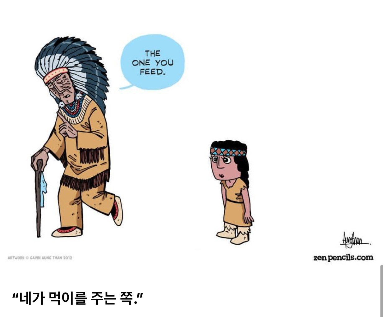 자신이 먹이를 주는 늑대가 이기게 되어 있으니까요.