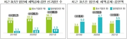 한국은 약 90만 개의 법인이 법인세를 내고 있습니다. 이 중 35만 개의 법인이 공제를 받고 있습니다. 중소기업이나 제조업은 주로 R&D나 설비투자에 대한 공제를 받는 반면 대기업 집단들은 '외국납부세액공제', 즉 해외에서 내는 세금만큼 공제받는 혜택으로 법인세를 감세받았습니다. 중소기업들 중 25%만이 감면의 혜택을 받았지만, 대기업, 특히 재벌 기업 집단은 거의 모든 법인이 감면을 받거나 신청하였습니다.