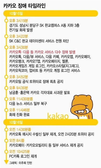 “카카오는 모든 데이터를 국내 여러 데이터센터에 분할 백업하고 있으며, 외부 상황에 따른 장애 대응을 위한 이원화 시스템을 가지고 있다.