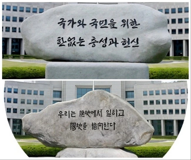 그럴 것이라고 생각 드는 이유는 MB시절 서울시 수도 국장 출신을 원장으로 앉혀 댓글부대로 전락시킨 흑역사와 특활비를 용돈처럼 사용하던 청와대를 거쳐, 대북 공작, 첩보를 축소당하는 굴욕의 정부를 만나기도 했지요. 이빨과 발톱이 다 뽑힌 야수의 심정이었을지도 모릅니다. 울고 싶은데 뺨 맞은 격이지요. 원훈마저 군사독재 시절로 도루묵이 되었으니까요.