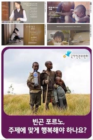 '빈곤 포르노'란, 모금이나 세간의 관심을 유도하기 위해 가난하고 병약한, 곤경에 처한 이들의 영상이나 사진을 자극적으로 극화, 연출시키는 것을 말합니다. 통용되는 '시사 상식 용어'입니다. 1980년대 국제 자선 단체들이 모금 캠패인의 활성화를 위해 시작한 아프리카 기아상태의 어린이의 모습을 여과 없이 사용하면서 시작됩니다. 그 효용은 즉각적이어서 캠페인 목표를 초과달성하게 되자, 다른 기부, 모금 단체에서 따라 하며 오늘날의 TV광고에 만연한 모습이 되었습니다.