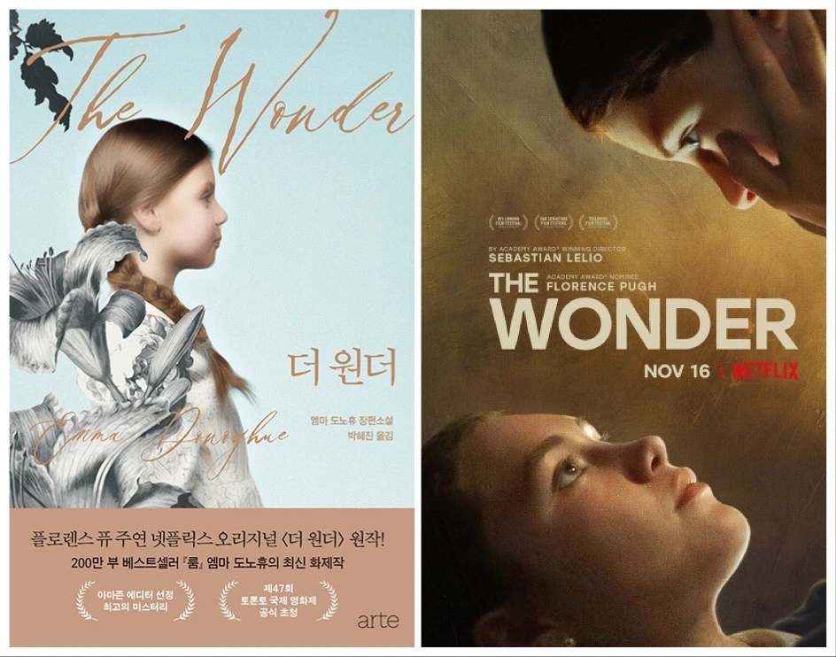 <더 원더>가 넷플릭스 영화로 스트리밍 되었다. 영화로도 제작된 바 있는 부커상 수상작이자 세계적인 베스트셀러 <룸>을 쓴 엠마 도너휴의 2016 작품이다. 아일랜드 더블린 출신의 작가는 대기근 시대에 소문처럼 퍼졌던 '단식 소녀'를 모티프로 이야기를 꾸렸다. 영화는 <판타스틱 우먼(2016)>으로 주목을 받은 아르헨티나 출신의 세바스찬 렐리오가 감독을 맡았다. 여성 작가의 소설에 충실한 미장센을 만들어 내고도 모자라, 화자가 개입하고 세트장의 안과 밖을 부러 노출하는 등, 문학의 익숙한 '낯설게 하기/소격 효과'를 부각하기도 한다. (이는 주제와도 맞 닿아 있다. 후술에)