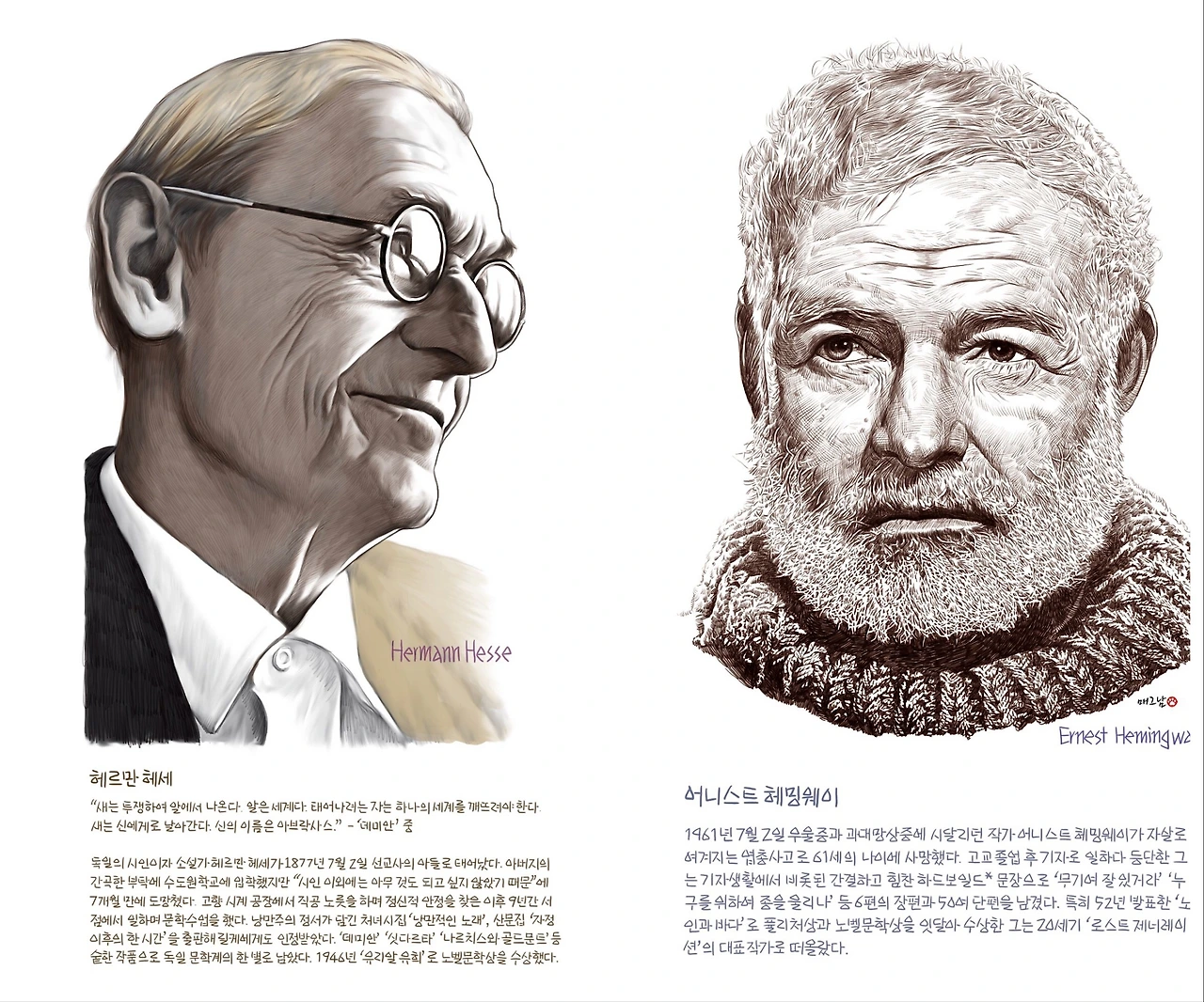 어리숙한 시절에 헤세처럼 사유하고 헤밍웨이처럼 글을 쓰고 싶었다. 될 리가 만무하지만, 그냥 바람이았다. 빠듯한 갑작스러운 가난에 그 바람만이 내 유일한 사치였다. <수레 바퀴 밑에서>와 <정원일의 즐거움>을 읽으며 얼굴 한 번 떠올릴 수 없는 스위스의 늙은 글쟁이를 동경했다. <노인과 바다>, <무기여 잘 있거라>를 펼치며 허무하게 냉소적이지만 힘 있는 문장을 품고 살았다. 어느 날 내 맘 속에는 헤세도 헤밍웨이도 찾을 수 없게 되었다.