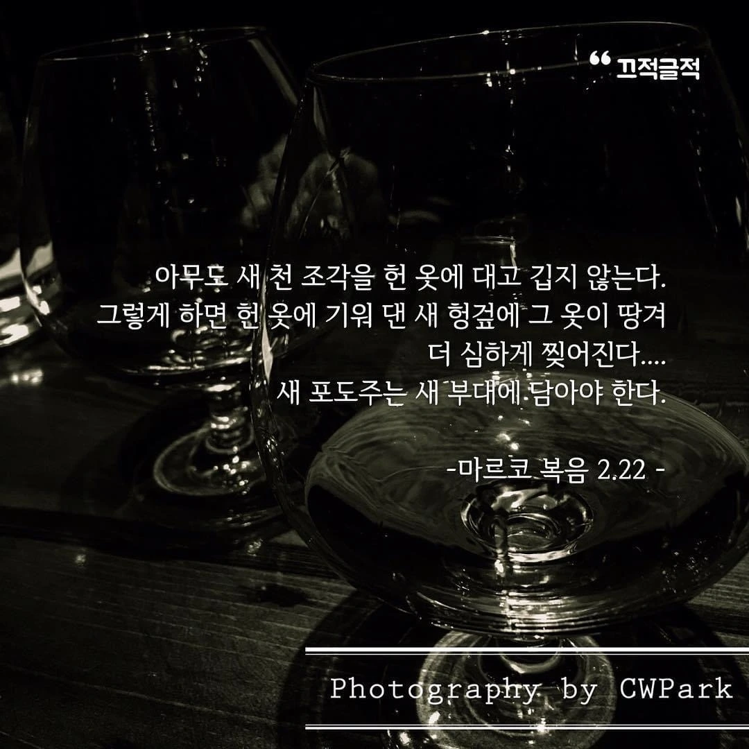 새 헝겊에 그 옷이 땅겨 더 심하게 찢어진다.... 새 포도주는 새 부대에 담아야 한다.