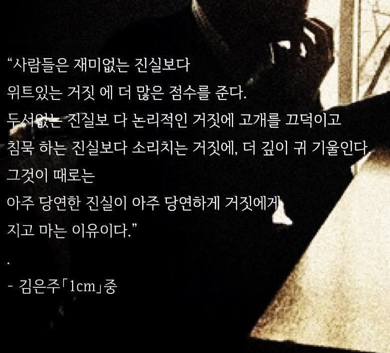 침묵하는 진실보다 소리치는 거짓에, 더 깊이 귀 기울인다.
