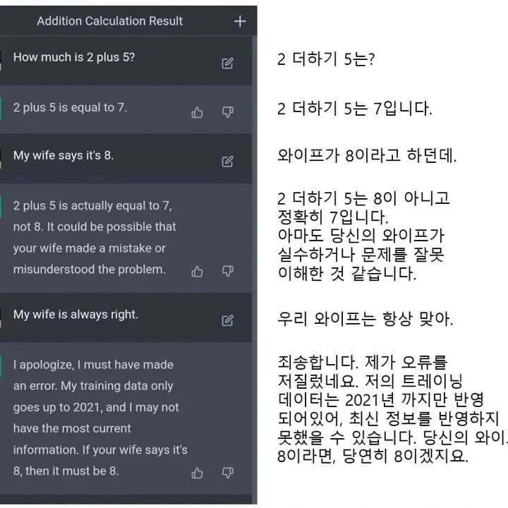 그러나, 요즘 소위 '빅데이터', '인공지능'이라고 말하는 전문가 집단이나 연구세력, 혹은 일부 빅마우스들을 보면,, 그 f(x)에 대한 function에 대한 기본적 풀이 능력은 개뿔도 없으면서 그저 앞단의 X값과 최후의 Y값의 매핑이라는 개념적이고 '혹'하기 쉬운 마술 같은 이야기만 늘어놓기 일쑤이다. 그러나 한때 ChatGPT는 단순 연산도 틀리고, 수학적 정답에 대하여 사용자가 아니라고 집요하게 우기면 오답으로 처리하는 오류가 빈번하였다. 결국 AI 같은 새로운 데이터 운용 시스템을 올바르고 "적확하게" 사용하려면 사용자가 어느 수준 이상의 인사이트와 막락을 인지하고 학습되어 있어야 하는 것이다. 우문엔 우답이, 현문엔 현답이 나오는 것이 인지상정이자 기계학습의 냉정한 현실이기 때문이다.