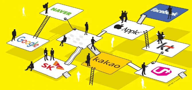 미래학자들이 예견했던 모바일 인터넷 기반 초연결 사회가 현실이 됐다. 기존 제조업 중심 산업에서는 물류와 자본이 몰리는 교통 요지가 중요했다면 초연결 사회에서는 정보와 대중이 모이는 ‘플랫폼’에서 가치가 나온다. 플랫폼이란 사람들이 열차를 타고 내리는 승강장처럼 온라인에서 상품과 콘텐츠를 사고팔거나 마케팅을 하는 일종의 장터를 뜻한다. 스마트폰의 대중화, 더욱 빨라진 통신 속도는 소프트웨어 기반 플랫폼 기업의 경쟁력을 높이고 있다. 같은 IT기업이라도 하드웨어 중심 기업은 이 같은 변화를 뒤따르기 바쁘다. 산업 패러다임 자체가 모바일을 위시한 플랫폼 위주로 바뀌고 있기 때문이다. 이른바 신업의 ‘파워시프트(힘의 이동)’가 진행된 것이다. - 2016. 2 기사 본문 중-