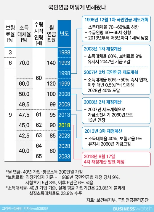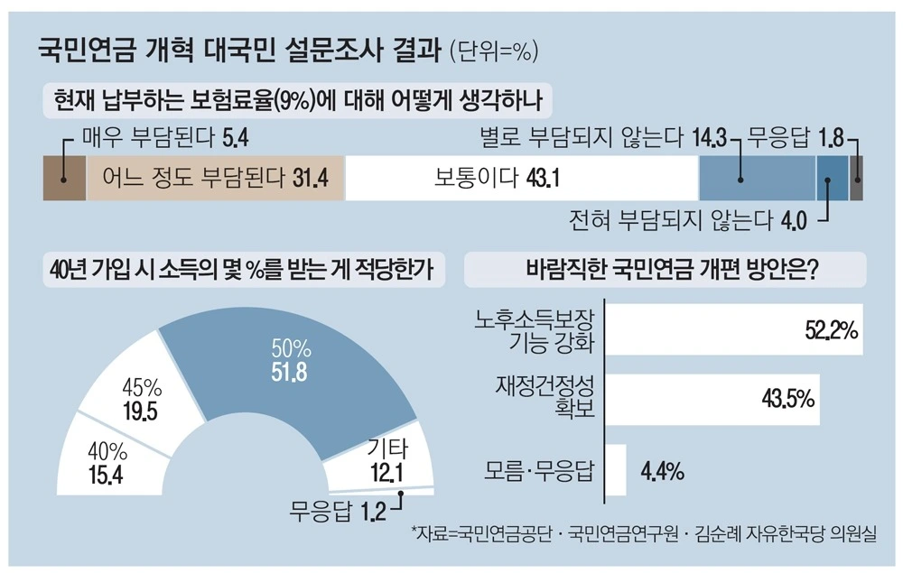 국민연금 기금 운용방법과 능력이나, 기초연금조차 받지 못하는 ‘기초수급 노인’ 문제나, 인구 구조의 변화로 연금제도의 개혁이 필요하다는 주장은 일리가 있다. 낮은 보장성을 확대하기 위해 가장 단순한 방법인 연금 소득대체율(연금액과 생애 평균소득의 대비율)이 우선 인상되어야 한다는 주장도 있다. 그러나, 정말 소득대체율만 높이면 해결이 되는 문제일까?
