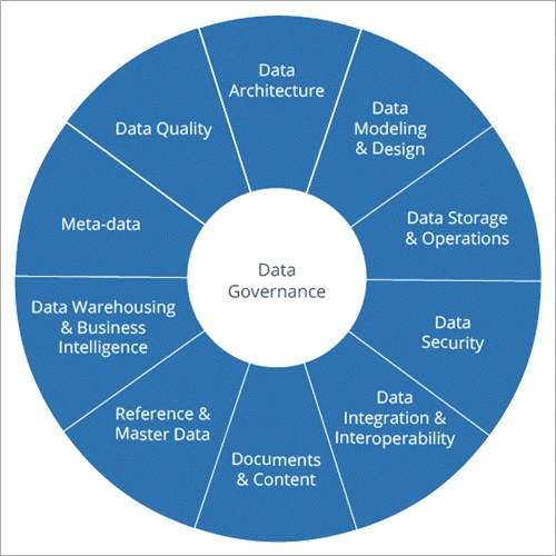 데이터 거버넌스는 새롭게 탄생한 개념이 아니라, 데이터 분석이 그렇듯, 기업정보관리(Enterprise Information Management)와 같은 기업 경영에 있어 오랜 역사를 가지고 있는 개념에 뿌리를 두고 있다. 시중에 있는 많은 사업영역 정의들 중에서, 아래에서는 다음과 같은 정의를 사용한다. 이 영역들은 결국 시장에서 "서비스"와 "소프트웨어"의 모습으로 유통되고 소비된다.