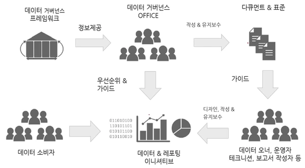 과거(2010년 까지도)의 데이터 거버넌스는 비교적 간단했다. 비즈니스, 행정 데이터는 각종 업무, 사업 시스템에서 생성되어 보안 방화벽 뒤에 보관하기만 하면 되었고, IT 또는 BI(Business Intelligence) 전문가들이 현업과 최고 의사 결정체의 요청으로 특정 업무에서 산출되는 고정적인 데이터를 분석하여 보고하는 비교적 단순한 과정이었다.