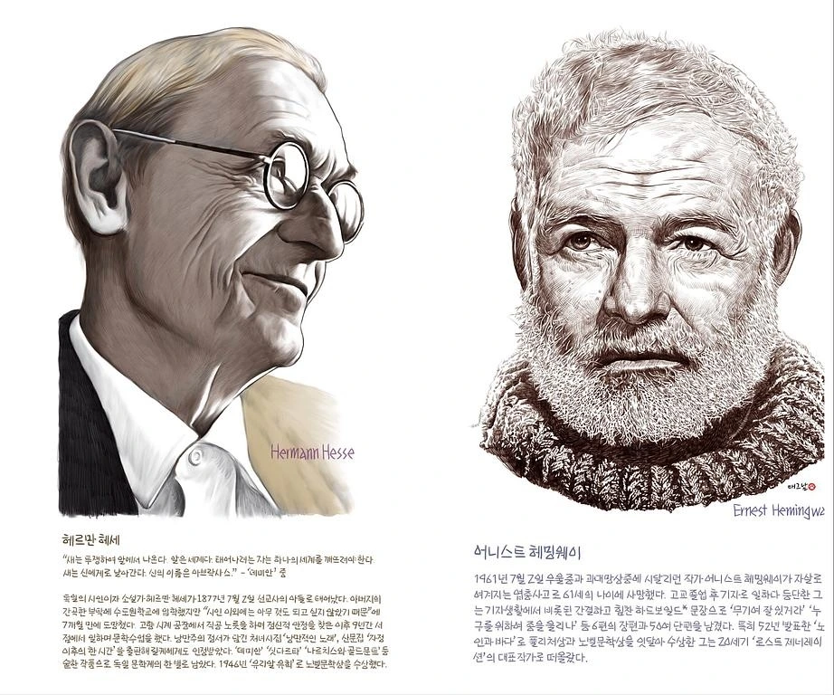 헤세와 헤밍웨이 (그림=매일 그리는 남자 https://naver.me/xyjl0Jwb)