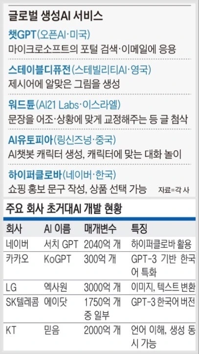 이동통신 3사가 챗GPT 등 초거대 인공지능(AI)을 활용, 한국형 AI 서비스 개발에 나선다. 한국어에 좀 더 친숙하고 사람에 가까운 대화를 할 수 있는 '인간 친화형' AI 기술 확보가 목표다. 이를 통해 개인고객(B2C)의 모바일 이용을 더욱 편리하게 돕고, 기업고객(B2B) 업무 효율성도 높인다는 접근이다. -기사 본문 중-