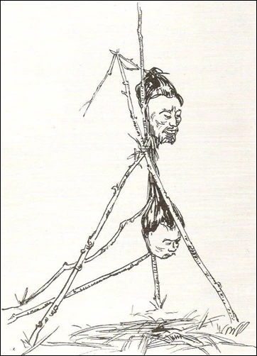 죄인을 참하여 저자거리에 내거는 형벌. 그림은 구한말 조선을 취재한 L. 로세티(Rosseti)가 스케치한 펜화