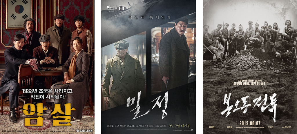 우리의 콘텐츠들은 어떠할까? 항일 독립운동에 대한 화려한 모습은 자주 조명되고 있다. 최근의 영화들을 살펴보더라도 <암살>, <밀정>, <봉오동 전투> 그리고 <영웅>까지 독립운동을 위한 항쟁과 투쟁의 모습은 극적으로 조명되고 있다. 그러나, 진짜 피해자들의 모습은 잘 드러나지 않는다. 위안부의 이야기를 다룬 <귀향>, <허스토리> 등의 작지만 강한 작품과 <아이 캔 스피크>같이 비유적인 함의의 작품들이 있지만, ‘대세의 콘텐츠’가 되지는 못했다. 최근은 독립영화에서 다큐멘터리 형식으로 <김복동>, <코코순이> 같은 작품들이 아는 사람만 찾아볼 정도이고, <유령>같이 역사적 시대정신은 온데간데없이 그저 시대 배경을 패션으로 차용하는 영화가 나오기도 하였다.