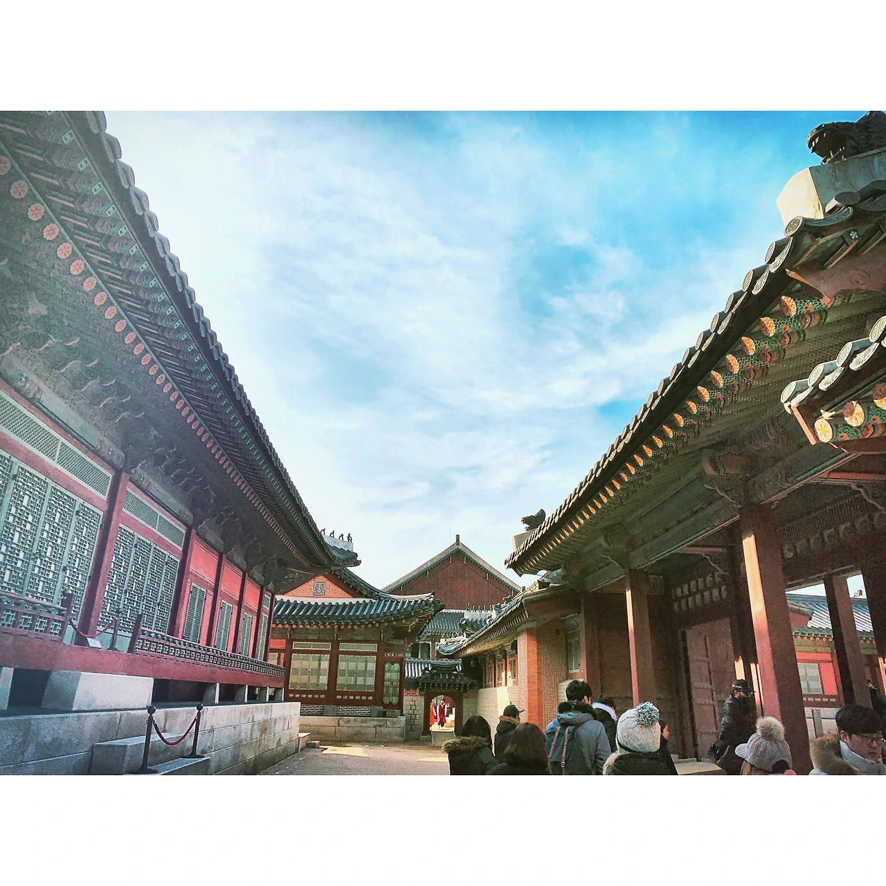 구름에 먼지가 묻은 것 같았지만, 새파란 하늘 아래 궁 나들이는 나쁘지 않았다.
