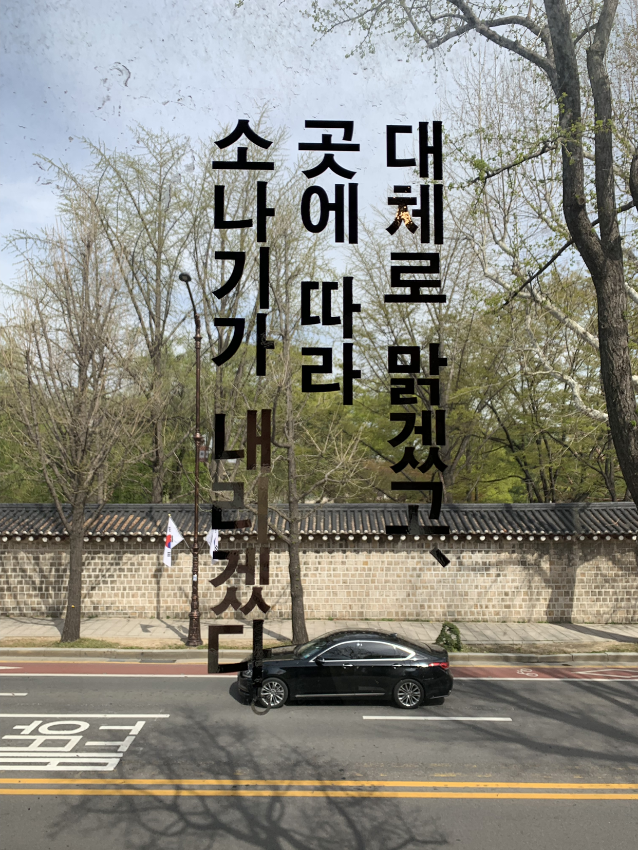 보안여관 옆으로 신축 갤러리 지하로 전시는 이어졌다. 좁은 통로와 층계단을 비집고 내려갔다. 간간히 창에는 한 편의 시 연작처럼 날씨를 들려준다.