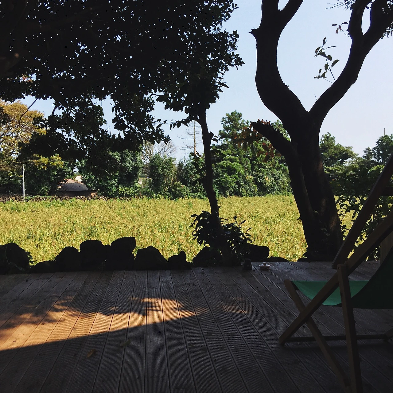 가끔씩 불어 오는 바람에 물결이 치는 듯 고개를 흔드는 모습, 집을 둘러 싸고 있는 크고 작은 나무에서는 새소리가 들려왔다. 나무 그늘 아래 비치체어에 깊숙이 몸을 묻고 한동안 이 전경을 눈에 담았다. 초록빛 물결이 이는 바닷가에 앉아 있었다.