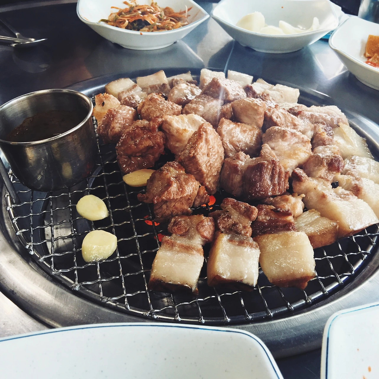 처음 먹어 본 흑돼지 구이는 훌륭했다. 육질도 좋고, 비계는 느끼하지 않았다. 껍데기는 바짝 익히면 쫀득한 식감과 고소함이 입안에 퍼진다.