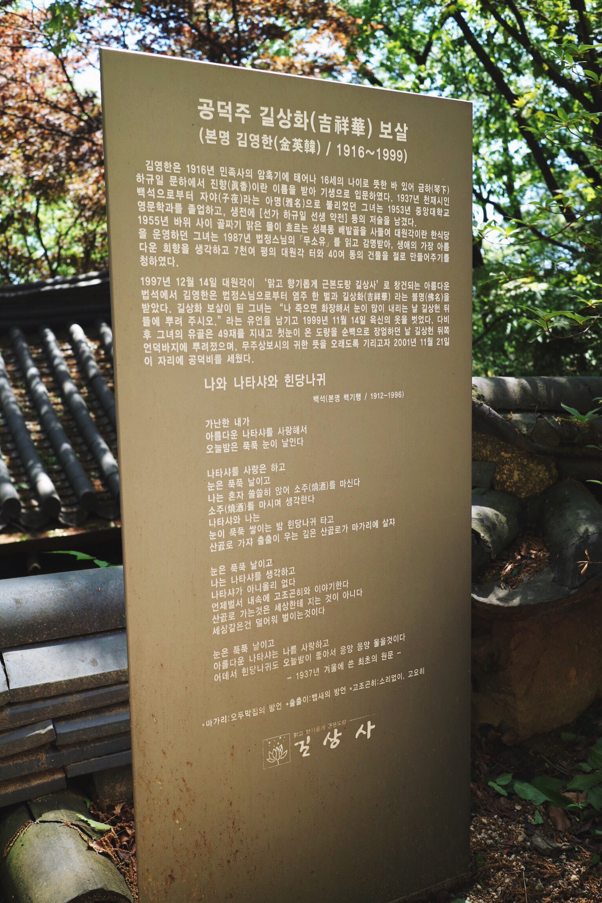 올 초에 어느, 날 좋은 아침에 충동적으로 '길상사'로 향했다. 동네에서 멀지도 가깝지도 않은 길상사는 성북동 높다란 언덕에 있다.