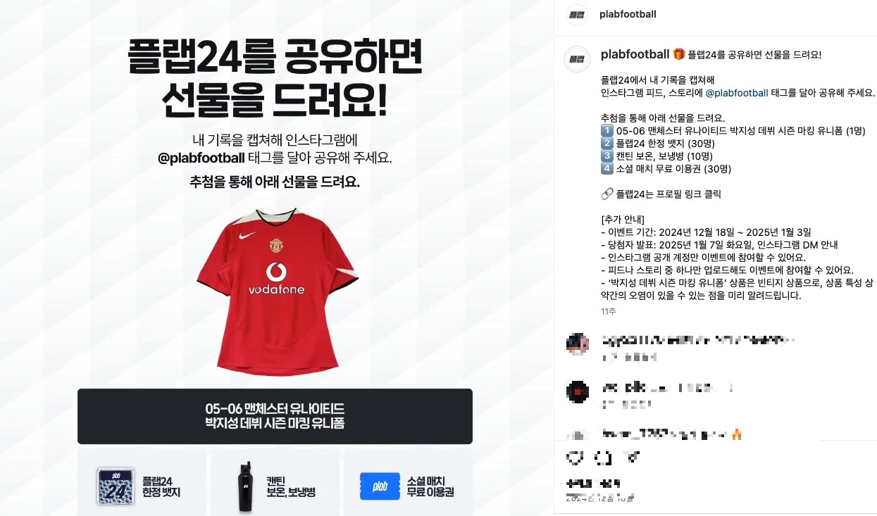 플랩풋볼(plabfootball) 마케팅 전략의 핵심은 SNS 바이럴 마케팅입니다. 특히 인스타그램을 적극적으로 활용하여 소비자들과 활발히 소통하고, 다양한 참여형 이벤트를 통해 자연스럽게 관심과 반응을 이끌어냅니다.