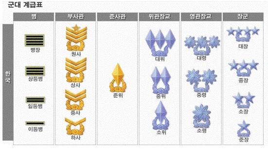 직업군인을 하기 위해서 가장 우선적으로 알아야 할 사항은 군인의 계급체계이다.