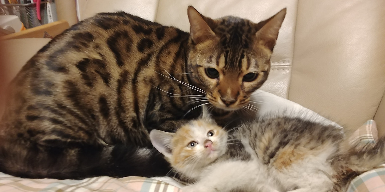 이렇게 5주 정도가 지나자 함께 뛰어 놀기 시작했다. 다시 한 달 정도가 지나니 서로 그루밍을 해주기 시작했고, 집에 온 지 3개월 만에 함께 모여 자고 있는 것을 발견했다.
