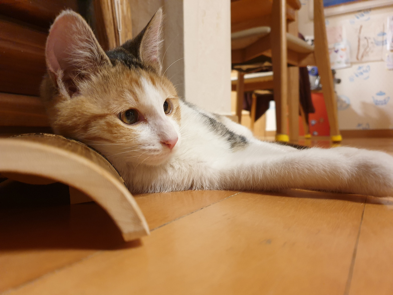 6개월이 지난 오늘. 첫날 밤 공포에 질린 밀키의 얼굴은 찾을 수 없다. 조금씩 클수록 개구쟁이가 되었고, 언니들을 제압하기 시작했다. 지금은 뱅갈 두 마리도 동조되어 예전보다 활동 반경이 두 배로 늘었다. 집안에 찢어지고, 떨어지는 물건들이 그만큼 많아졌다.