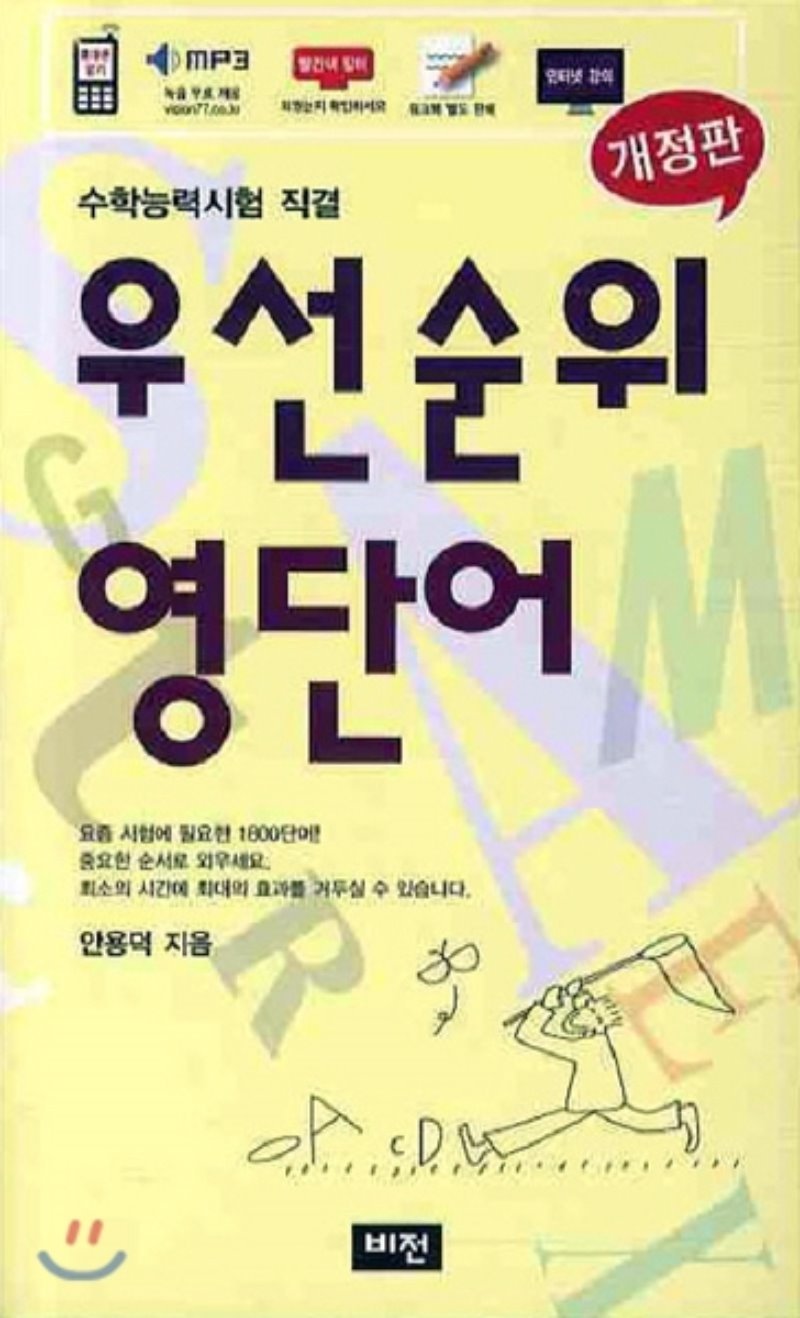 고등학교 때 내가 좋아했던 것은 바로 우선순위 영단어를 외우는 것이다. 당시 우선순위 영단어는 당시 선풍적인 인기를 끌었던 단어집이다. 나는 쉬는 시간에도 화장실만 잠깐 다녀오고 영단어를 쉴새 없이 외웠다. 단어장에 붙어 있던 빨간 셀로판지를 잘라서 단어의 뜻을 가리고 단어를 많이 외웠던 기억이 난다.
