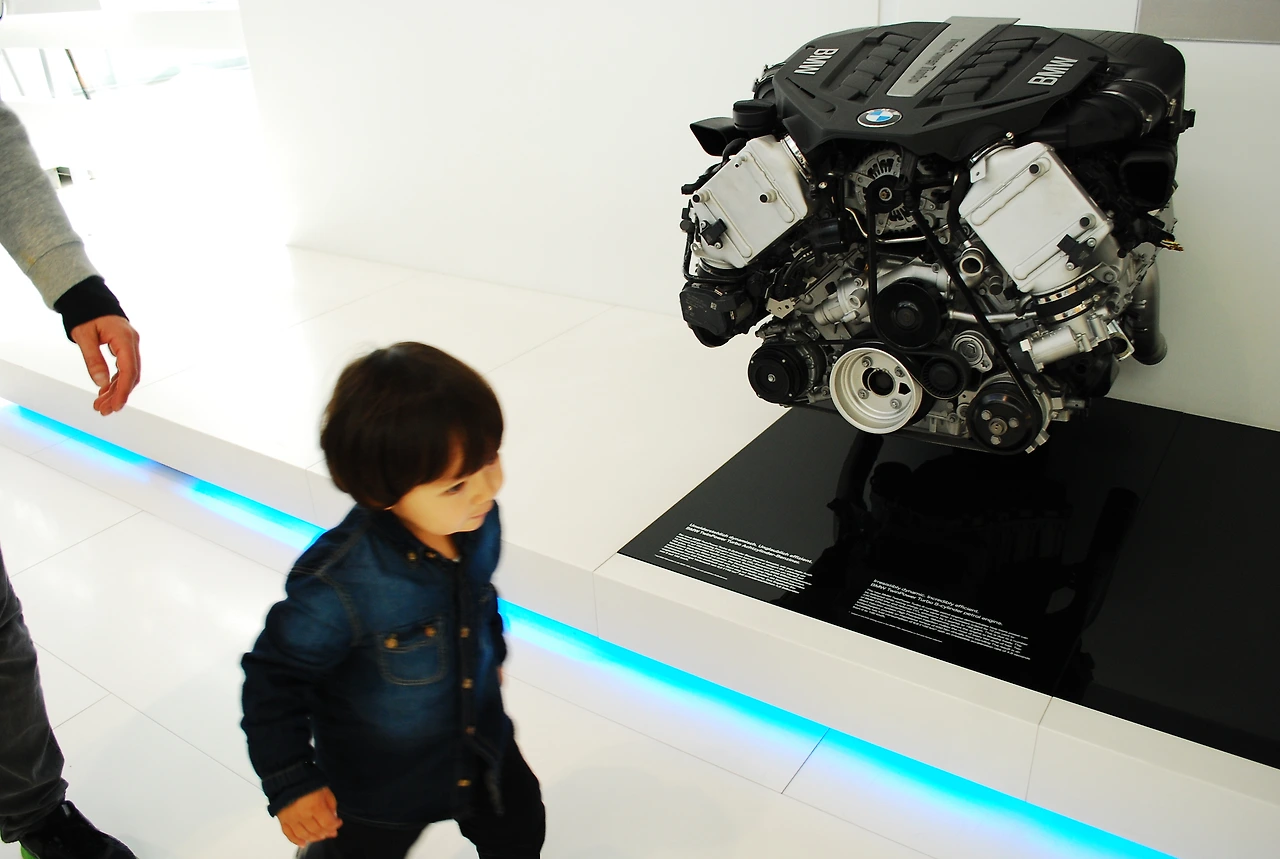 앙카라 투 뮌헨으로 항공권을 구입한 후 첫번째 한 일은 뮌헨의 여행지를 검색해 보는 것이었다. 님펜부르크 궁전, 마리엔광장, 호프브로이, 다하우강제수용소 등 많은 관광지가 있었지만 그중에 꼭 가야지 결정했던 곳은 BMW박물관이었다. 카안이 제일 좋아하는 장난감이 자동차였기 때문이다. 아이들도 함께 하는 여행이었기 때문에 아이들을 위한 관광지도 필요했는데 마침 잘됐다 싶었다. BMW는 박물관과 WELT를 구분하였는데 박물관은 자동차의 역사에 대한 것이라면 WELT는 신형모델 전시나 각종 이벤트성 프로그램이 마련되어있는 전시장이었다. 우리는 BMW WELT로 이동하였다. 이안이에겐 천국같은 곳이었다. 도착하자마자 신이나서 발을 동동 구르던 아이. 이렇게 우리는 또 하나의 추억을 만들었다.