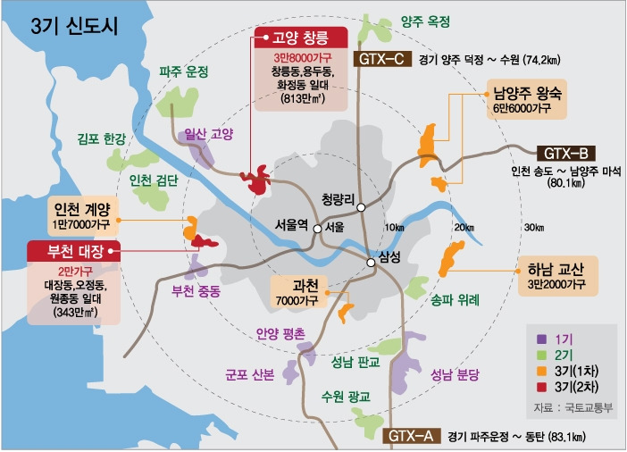 [그림 1] 제1~3기 수도권 신도시 현황