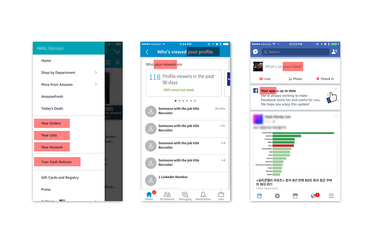 반면에 'you' 언어는 제품이나 서비스를 제공하는 주체가 있으며, '당신'(사용자)을 위해서 일한다는 개념이 깔려있다. 'my'언어는 제품이 사용자의 일부라고 알려주지만, 'you'언어를 사용하는 제품은 사용자를 돕는 비서 같은 느낌이 강하다.